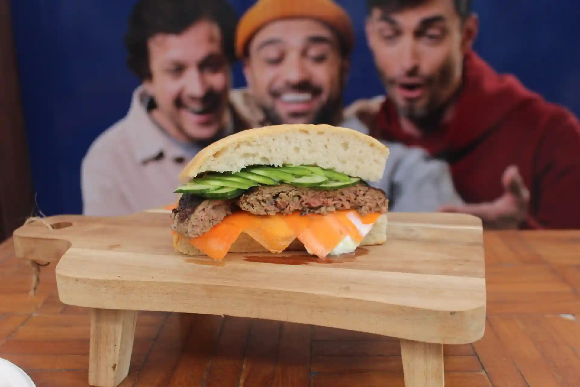Homemade bread, homemade ground meat, 4 spices, jalapenos, carrot pickle, white sauce.