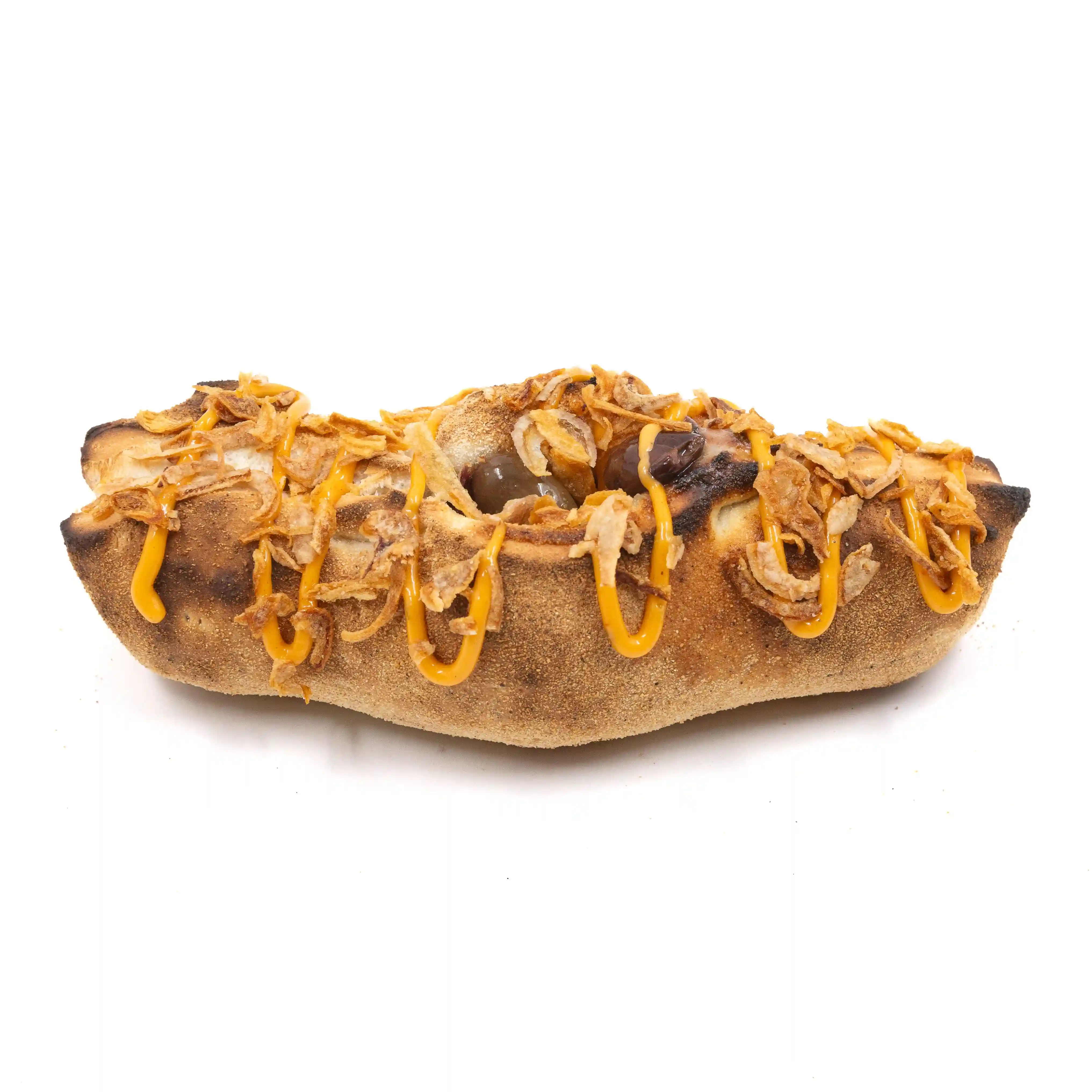 Mozzarella base, Crème fraîche, Half Montbéliard sausage, Taleggio, Onions.