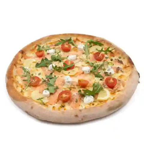 Fresh Cream, Mozzarella, Salmon. After cooking: Boursin, Cherry tomatoes, Lemon juice, Fresh lemon slices, Chives, Dill…