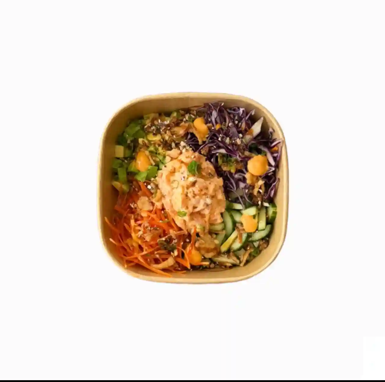 Choix de base, concombre, carotte, choux rouge, avocat, praline de maïs croquant, oigno…