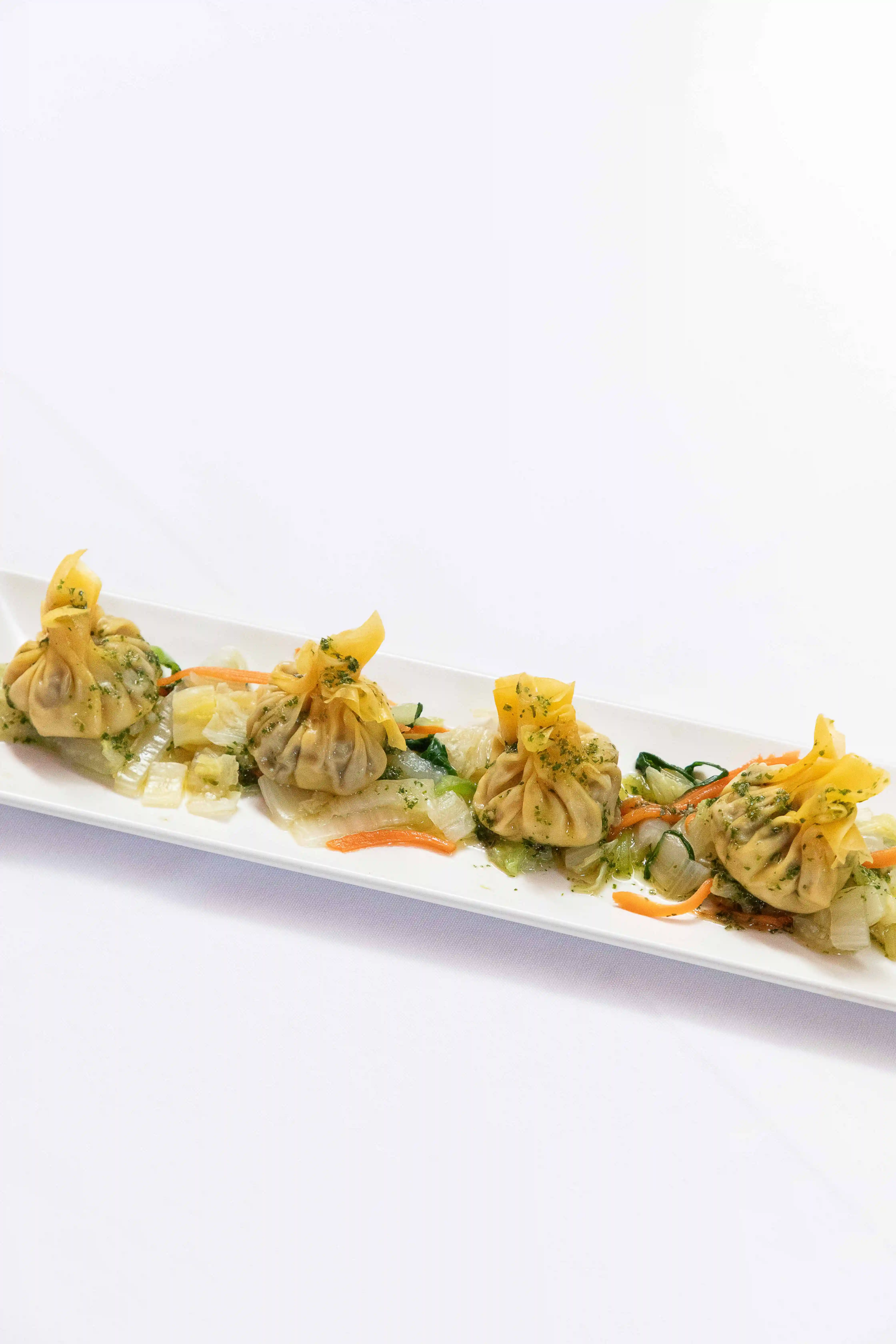 Nouilles de riz, raviolis poulet et légumes, poulet, bouillon