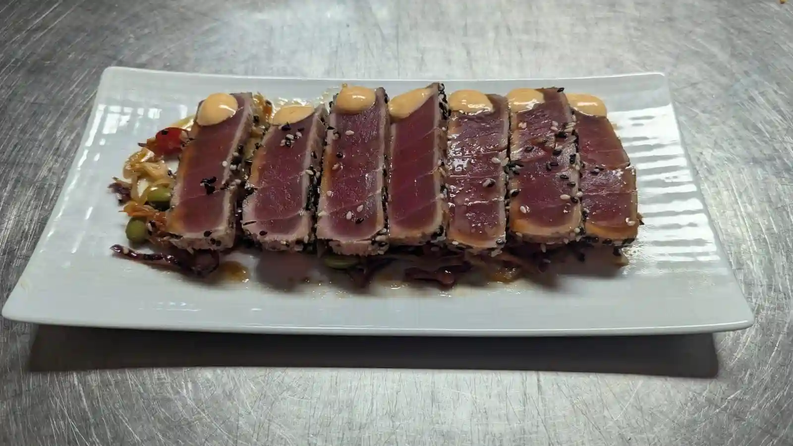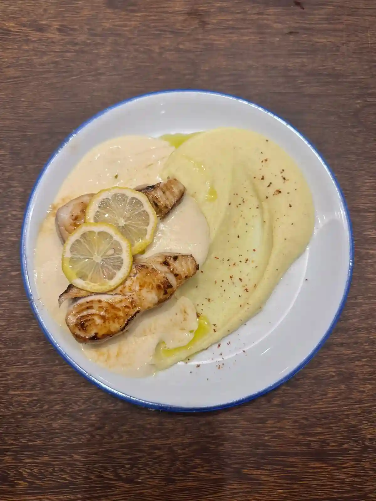 Mahi grillé, asian slaw, mayonnaise citron avec pommes de terre frappées ou salade verte