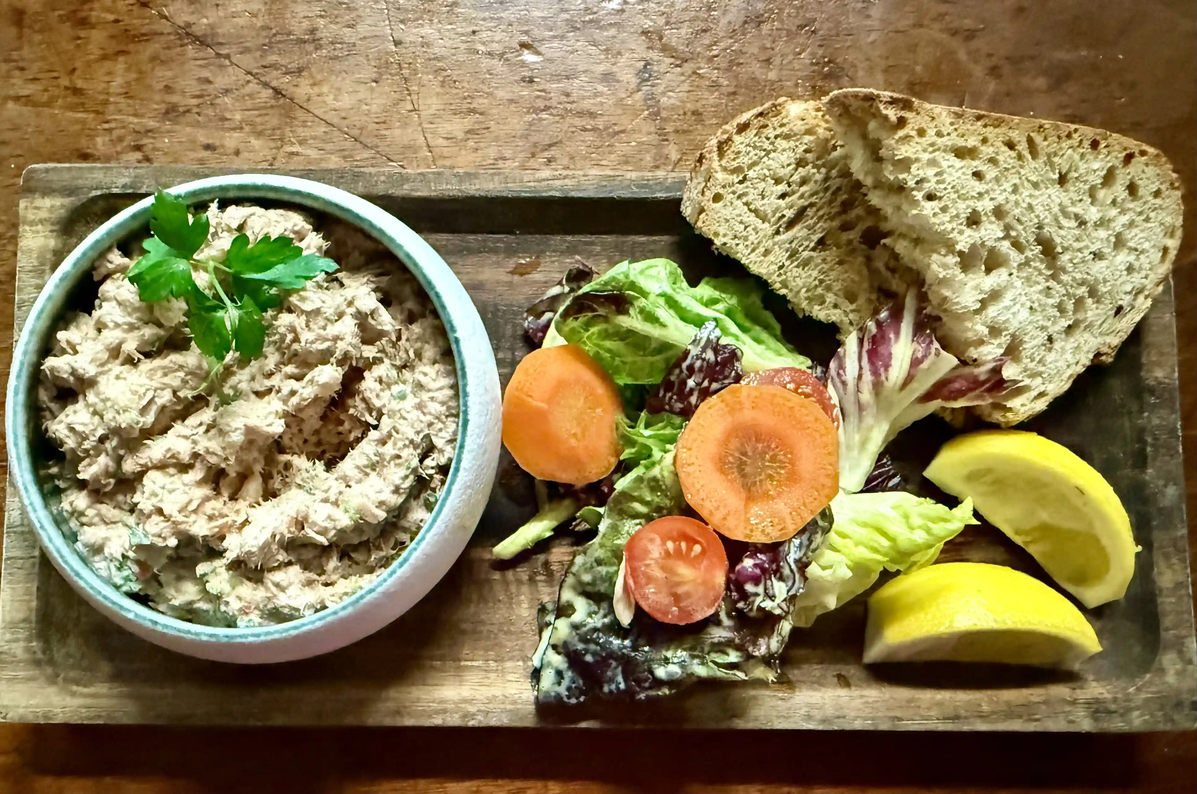 Rillettes de poisson local, et salade d…