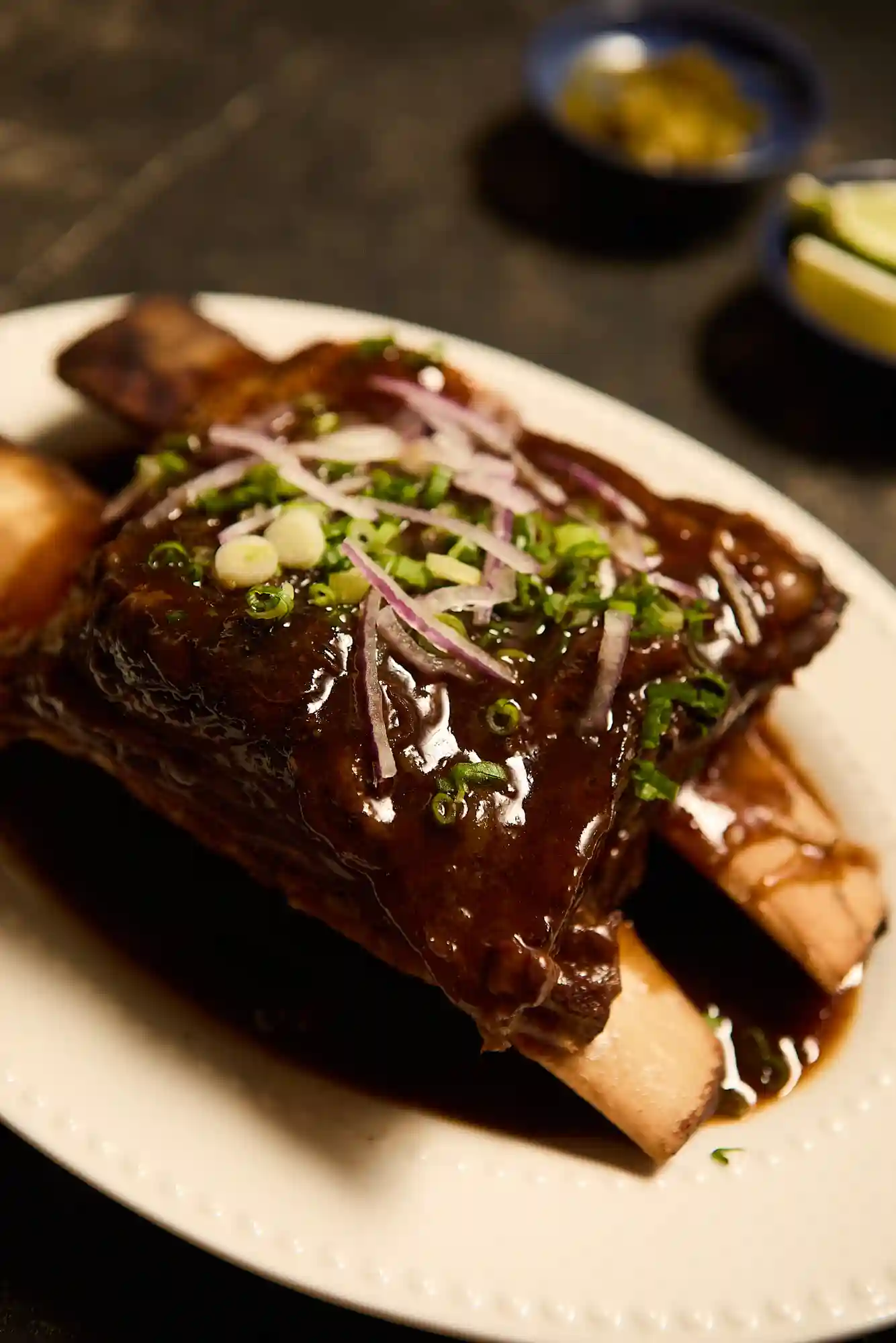 Poulet frit, pickles de concombre, sauce maison barbecue, miel moutarde