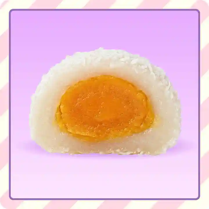 Perles de riz gluant à la crème d'œuf, enrobée de noix de coco.