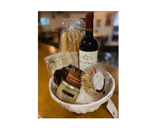 Château Richebon Pauillac, dried tomato delight, Greek-style black olives with lemon, olive oil breadsticks, Salad pâté…