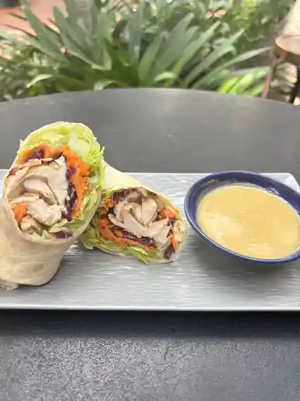 Fried chicken breast, brioche buns, Korean sauce, cheddar cheese, tomatoes, cucumber pickles, onion compote