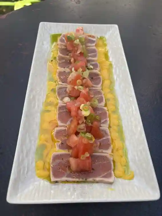 Green salad, tomatoes, soft-boiled egg, bacon, tonnato sauce