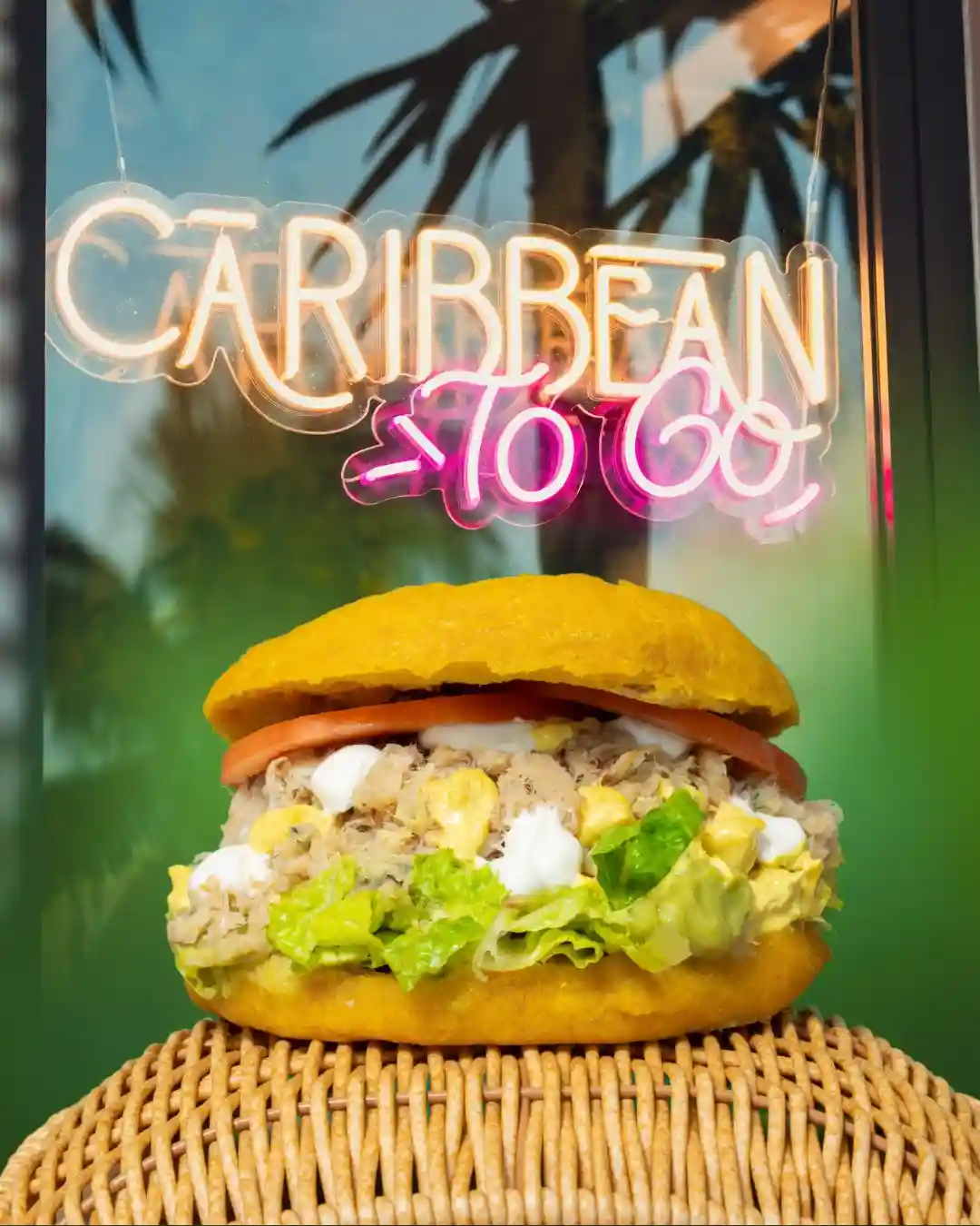 Ti-nain, concombre, guacamole, sauce chien, salade de papaye, banane plantain, coriandre fraîche