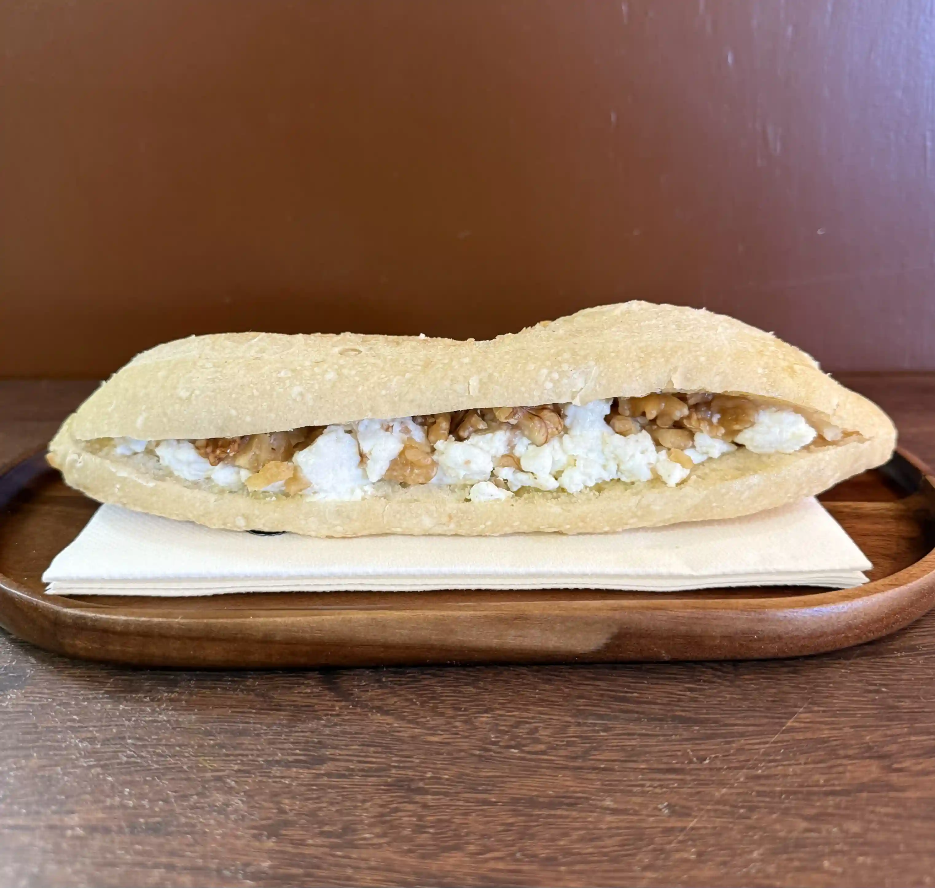 Baguette, chèvre, mozzarella, noix, miel de fleurs, origan