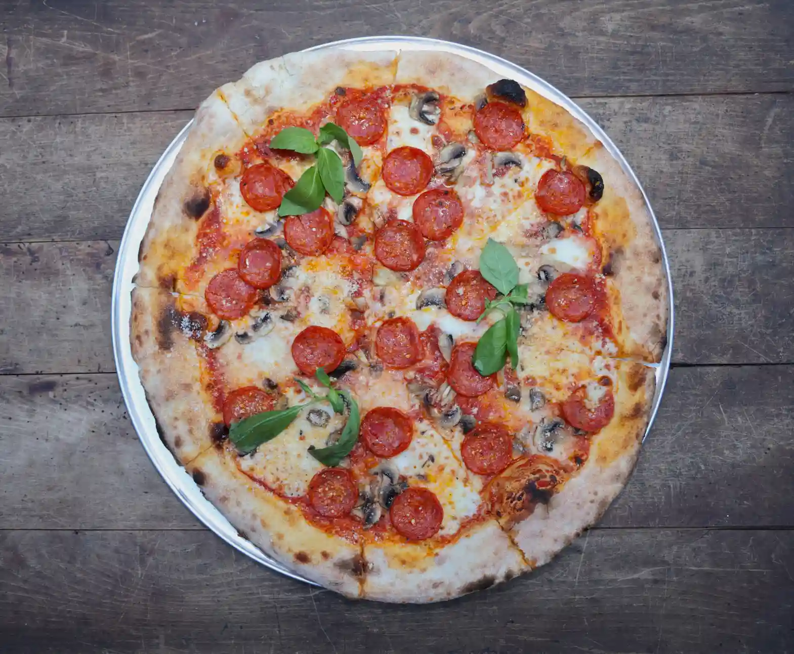 Extra large pour 2 personnes à composer sur base tomate, mozzarella, parmesan et accompagné de basilic
